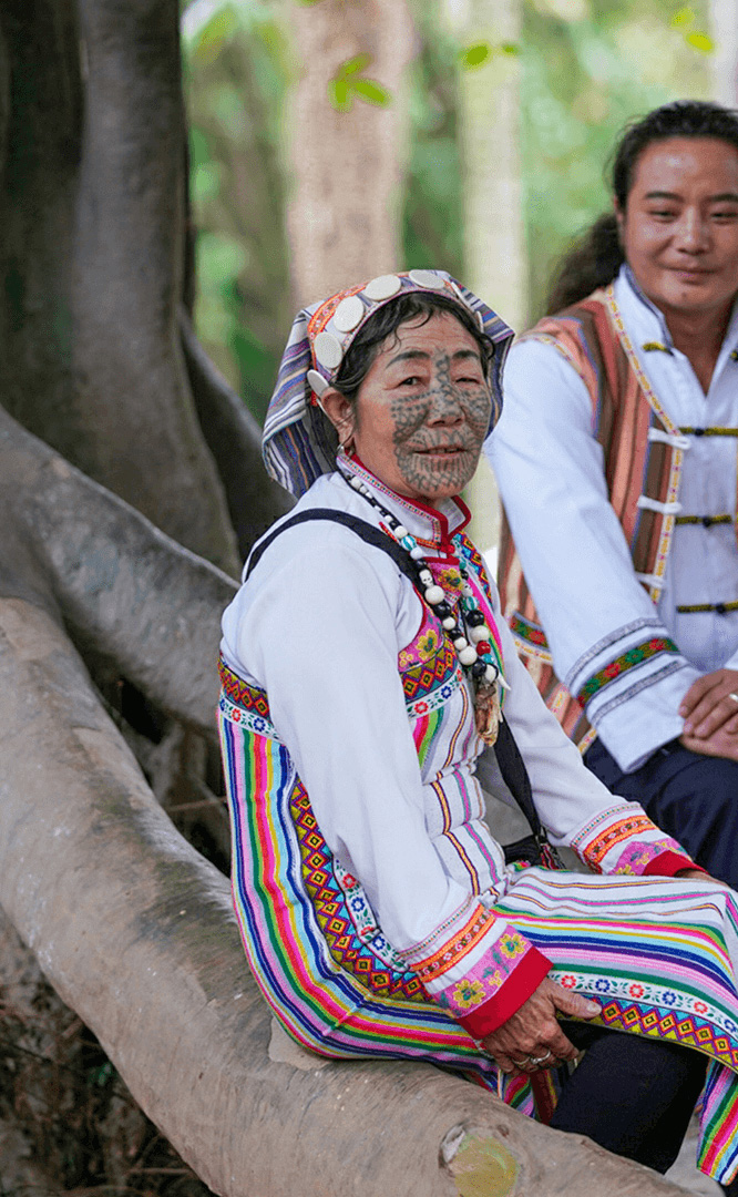 基諾族人口約1.8萬,主要聚居在云南省景洪縣的基諾山區?;Z族寨與佤族寨、布朗族寨一橋相連,隔水相望。步入基諾族寨,可以看到綠樹鮮花叢中點綴著嶙峋怪石,一幢幢基諾族茅草屋錯落有致,仿佛走進了山巒起伏的基諾山區?;Z族寨建有基諾族群眾的大公房、民居樓、糧倉和太陽廣場。基諾族能歌善舞,有著豐富的文化。在表現基諾族太陽崇拜的太陽廣場上,歡快熱烈的“太陽鼓舞”,鼓聲雄健深厚,舞姿輕快活潑,是基諾族最具民族...